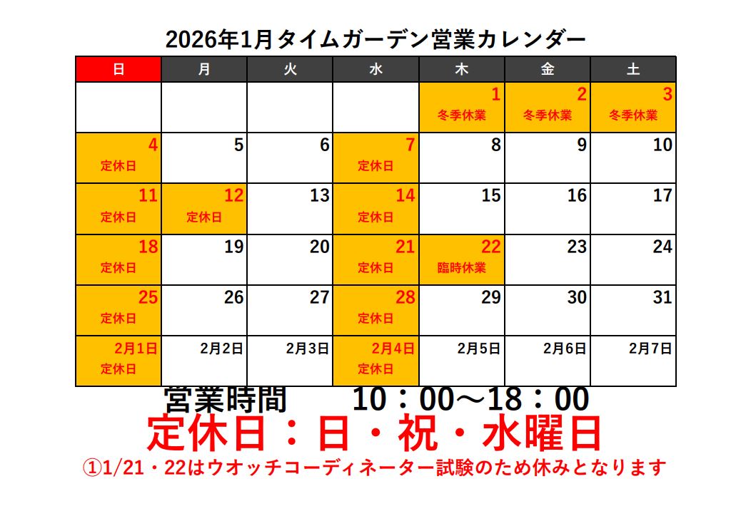 【2026年1月の営業カレンダーです】 今年もどうぞよろしくお願いします。 1/21.22はウオッチコーディネーター試験のため お休みいたします 定休日は電話等はでませんので、ご了承ください。 【機械式掛時計の修理しばらく中止いたします】 現在、腕時計の修理が大変立て込んでしまいました そのため、お預かりしている掛時計修理がなかな進めることができません しばらく掛時計機械式(ゼンマイ式、おもり式等)のお預かりを中止いたします ご理解のほどよろしくお願いします。 Bluesky