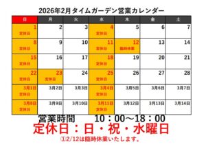 【2026年2月の営業カレンダーです】