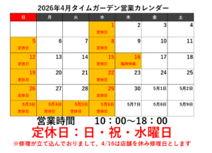 【2026年4月の営業カレンダーです】 こんにちは!4月の営業カレンダーとなります。 4/16 臨時休業日となります 定休日は電話等はでませんので、ご了承ください。 【機械式掛時計の修理しばらく中止いたします】 現在、腕時計の修理が大変立て込んでしまいました そのため、お預かりしている掛時計修理がなかな進めることができません しばらく掛時計機械式(ゼンマイ式、おもり式等)のお預かりを中止いたします ご理解のほどよろしくお願いします。 Bluesky